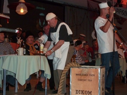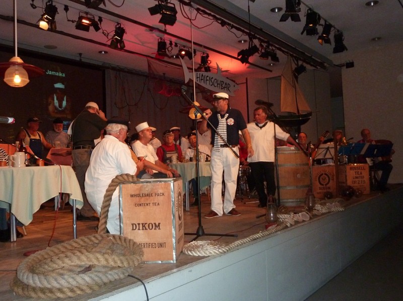 Im restlos ausverkauften Kursaal war die Premiere zur "Haifischbar" ein voller Erfolg. Die Männer vom Shanty Chor Überlingen und seine Gäste zündeten ein Feuerwerk an Melodien und das Publikum sang begeistert mit. Witzige Dialoge und eine perfekte Bühenpräsentation bewirkten, dass das Publikum von Beginn an mit in die Geschehnisse auf der Bühne einbezogen wurde.